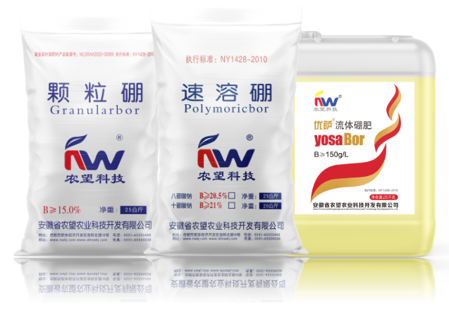 博薩噴施型葉面硼肥是以硼化合物為原料,采用先進的科學技術,由高濃縮聚合硼酸鈉鹽與高效助劑復配而成的的專用葉面硼肥。